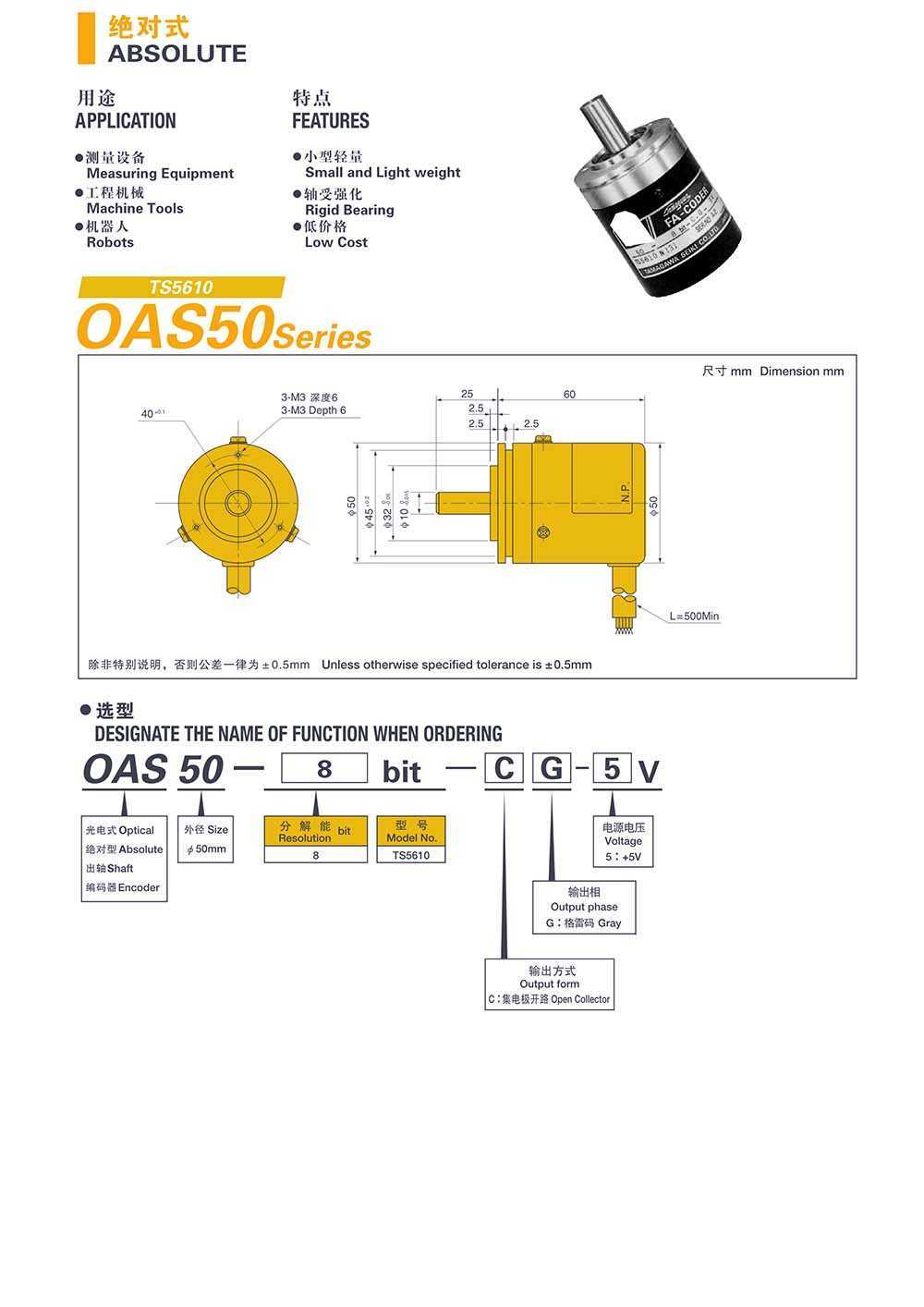 所屬型號:OAS50 所屬品牌:多摩川 所屬分類:編碼器_絕對式 應用領域:紡織行業 電梯行業 機床行業